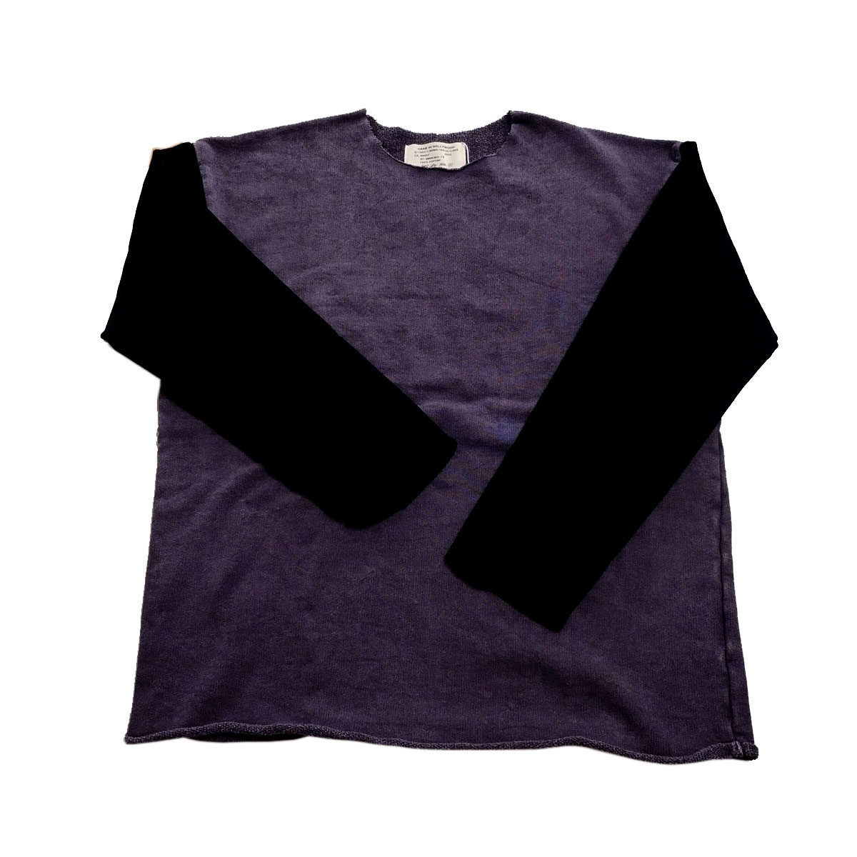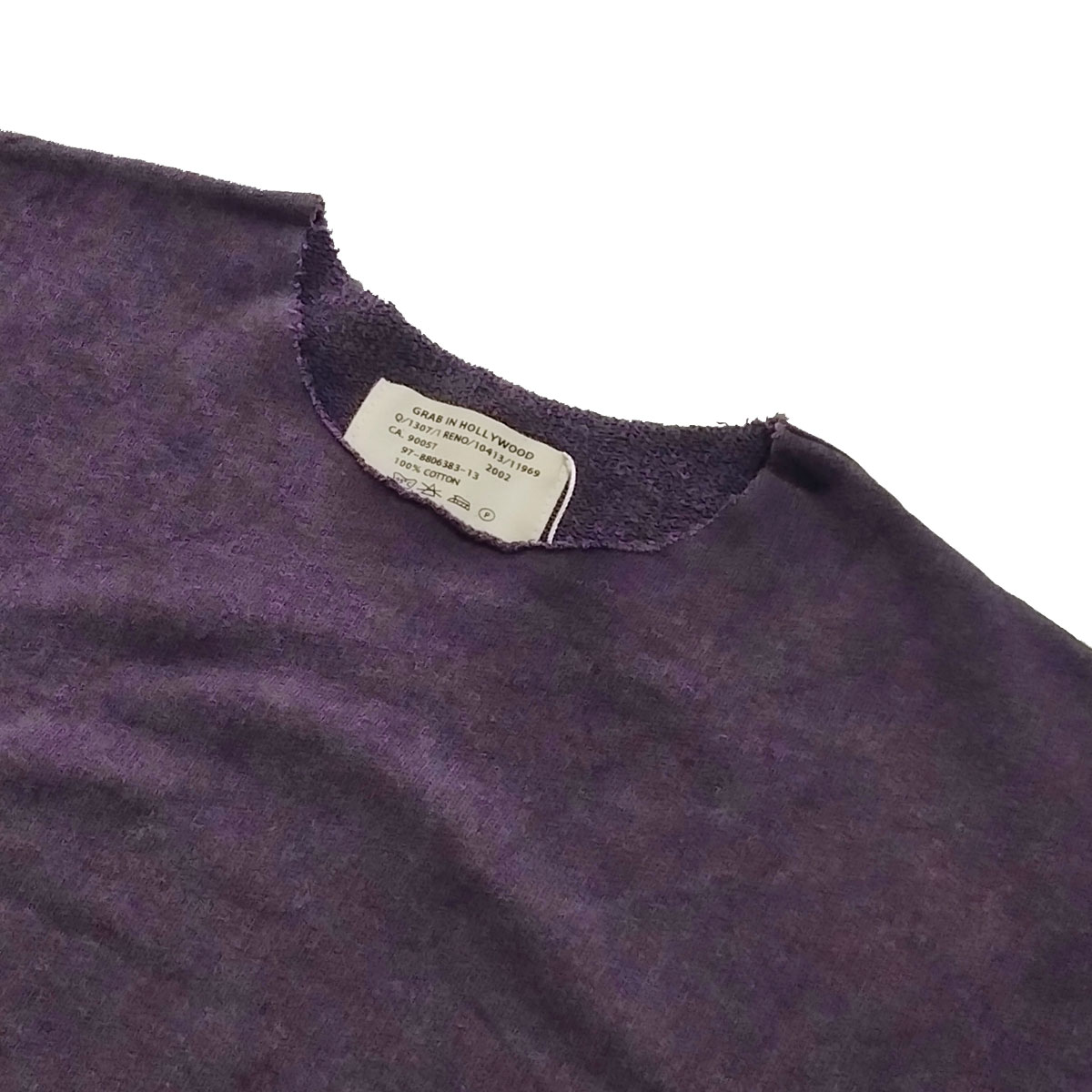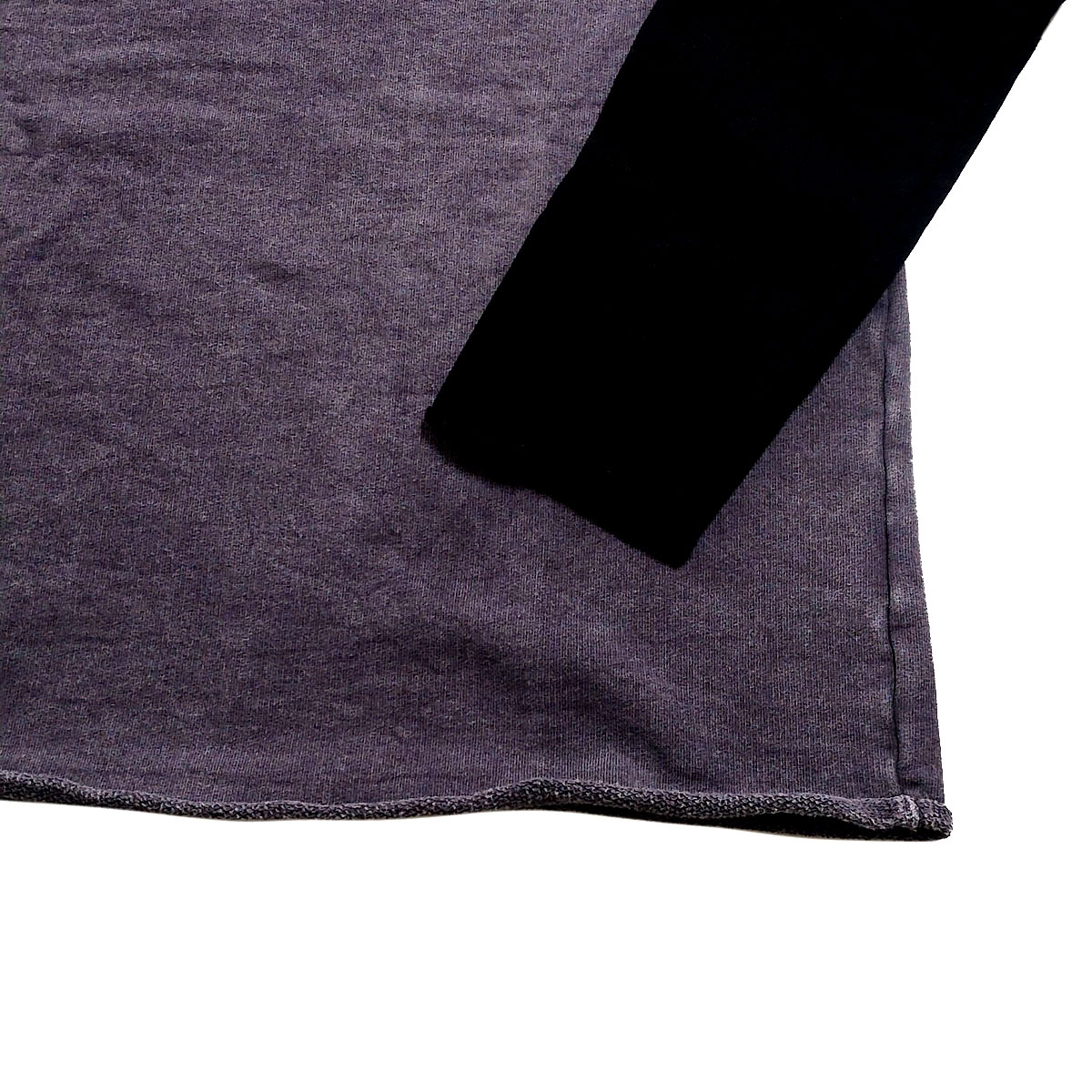 表糸にカリフォルニア産の上質な綿花を原料に使用し、特殊紡機で生産した糸を使用していますので通常のリング糸とは構造が違い、かさ高のある生地となっています。今季の新型、8~9分位の袖となっています。首回りの開きをクルーネックのように小さくし、ややドロップショルダーに着丈短めのボックスシルエットと今の主流のシルエットに仕上がっています。勿論今までと同じように衿周り・袖口・裾部分を敢えて断ち切りの状態で仕上げてあります。裁断面もほつれないように袖口や裾部分の両サイドを2か所折り返して留めてある等、細かい部分にも拘っています。TANK TOPの上に合わせたりとレイヤードの着こなしで真価を発揮するALL CUT。VINTAGE FRENCH TERRY生地の製品染めも良い雰囲気に仕上がり、着こむほどにアジが出てきます。AMERICAN VINTAGEを彷彿させる程よい厚みとザラッとした素材感が魅力です。MADE IN JAPAN